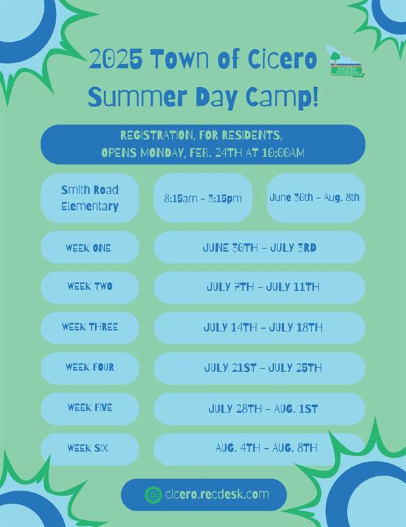 Registration for Cicero Residents will open online on Feb. 24th at 10:00 AM.